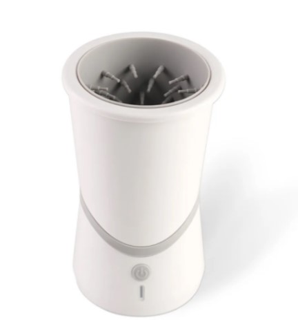 Ang ergonomic na modelo na may komportable, matibay na hawakan ng isang kamay, na naglalaman ng power button at built-in na baterya, ay tumutulong sa paghuhugas ng mga paa ng malalaking aso. Ito ay pinadali ng isang glass diameter na 15 cm at isang silicone brush insert. Mayroon ding mga bristles sa ibaba para sa mas mahusay na paglilinis ng mga daliri at balat sa ilalim ng mga kuko. Mga singil sa loob ng 3 oras. Ang isang buong singil ay sapat na para magtrabaho sa loob ng 8-10 araw.