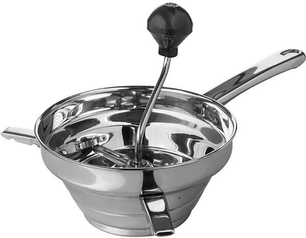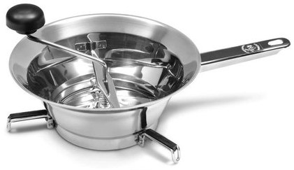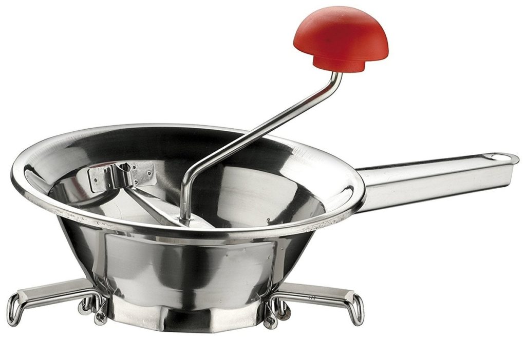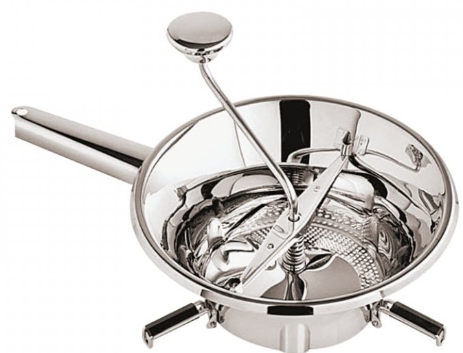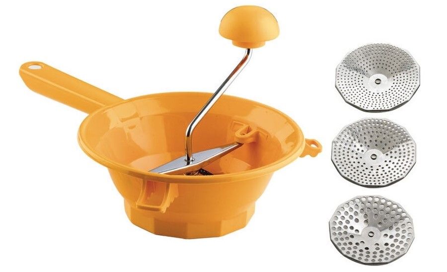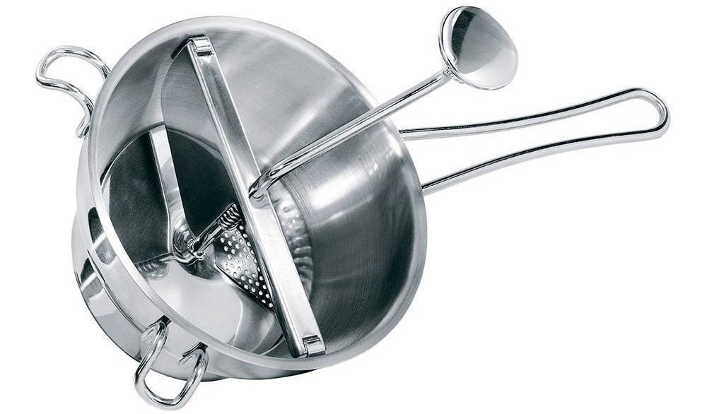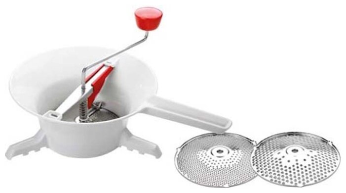 Modelong gawa sa Italy, gawa sa hindi kinakalawang na asero. Angkop para sa paggawa ng mashed patatas. Kasama sa kit ang isang set ng mga naaalis na drive. Uri: mekanikal. May kasamang 3 naaalis na drive. Ang isang komportableng non-slip na hawakan ay nagbibigay-daan sa iyo upang iproseso ang isang medyo malaking bilang ng mga produkto. Timbang: 820 gr. Mga sukat: 24x35x16 cm Presyo: 10570 rubles.