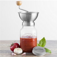 Manu-manong purée at sauce masher na may garapon. Angkop din para sa mga mansanas, itlog at patatas. Ang garapon ay maaaring hugasan sa makinang panghugas. Kung kailangan ng pangmatagalang imbakan, dapat na sarado nang mahigpit ang garapon (hindi kasama ang takip). Ang garapon ay gawa sa baso na may mataas na lakas at transparency. Bansa ng tatak: England. Presyo: 3850 rubles.