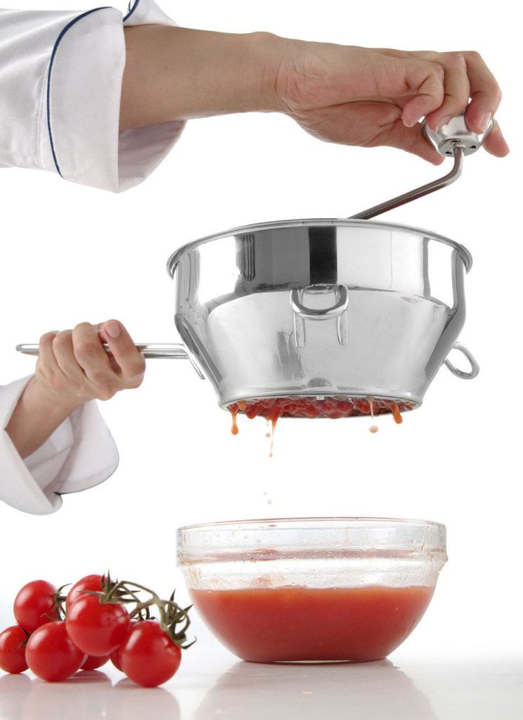 Mechanical sieve para sa prutas, berry at gulay na katas. Ang kadalian ng paggamit at versatility ay nakikilala ang salaan mula sa mga kakumpitensya. Ang mga wiping disc ay may iba't ibang mga diameters: 1.5, 2.5, 5 mm Pinapayagan ka nitong lumikha ng mga produkto ng iba't ibang pagkakapare-pareho. Prinsipyo ng pagpapatakbo: Mekanikal. Ang warranty ng tagagawa ay 1 taon.Average na presyo: 2300 rubles.
