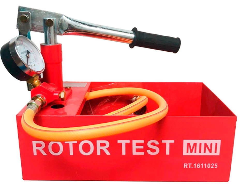 Ang manu-manong tester na "Rotor Test Mini" ay ginagamit upang subukan ang higpit ng mga komunikasyon na nagdadala ng tubig na may presyon na hanggang 25 bar, ang aparato ay may metal na reservoir na may kapasidad na 5 litro. Ang aparato ay mabilis na "i-pressure" ang sistema ng pag-init. Ang "Rotor Test Mini" ay ginagamit upang subukan ang pagtagas sa loob ng mga air circuit, refrigerator, oil at sprinkler structures, at iba pang saradong installation. Ang pressure gauge na kasama sa set ay madaling basahin. Ang lalagyan ay may rubber lining na nagbibigay-daan sa iyong mas kumportableng dalhin ang device.