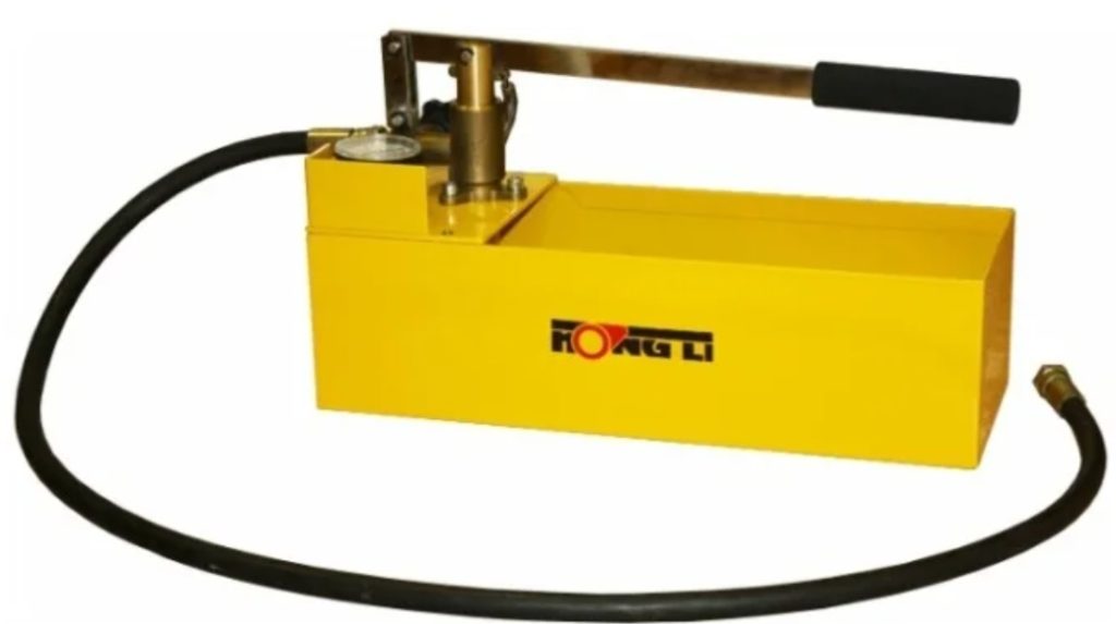 Ang manu-manong yunit ng Aleman na "Rothenberger RP 50" ay ginagamit para sa tumpak, mabilis na pagsubok ng presyon ng pagtatrabaho, higpit ng mga istruktura ng supply ng tubig, tangke, pagpainit, kagamitan sa sanitary, compressor, singaw, paglamig, mga yunit ng langis.Ang aparato ay bumubuo ng presyon sa lugar ng pagsubok, pagkatapos nito ay isinasara ng operator ang shut-off na balbula at inoobserbahan kung ang mga pagbabasa ng pressure gauge ay bumabagsak. Ito ay nagtatatag kung ang istraktura o lalagyan ng supply ng tubig ay airtight.