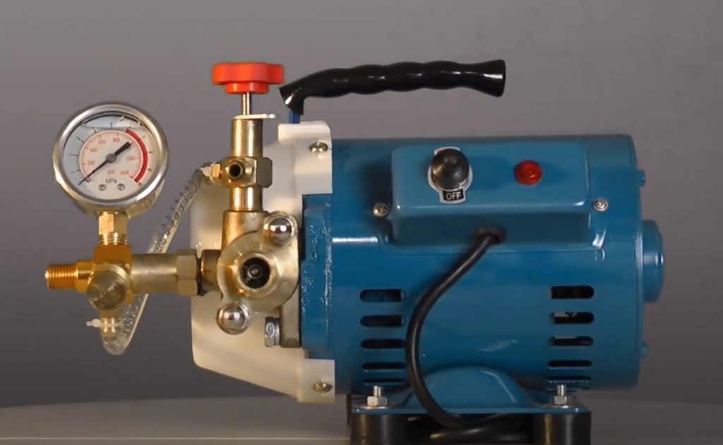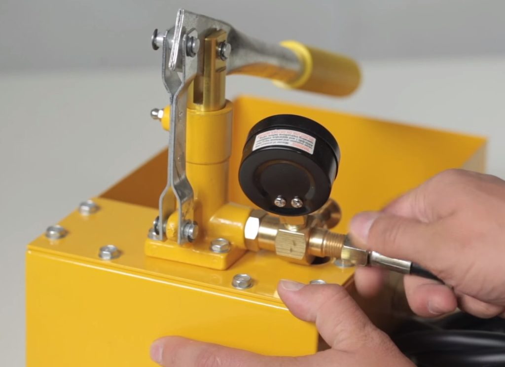 Ang isang kwalipikadong tao ay gumagamit ng functionality ng isang hydrostatic unit upang magbomba ng likido sa mataas na presyon sa isang sistema ng supply ng tubig. Ang pagsubok ay nagbibigay ng kumpiyansa na ang mga bahagi ay na-assemble nang tama, pagkatapos nito ay maaari kang mag-install ng mga kagamitan sa banyo o iba pang kagamitan.