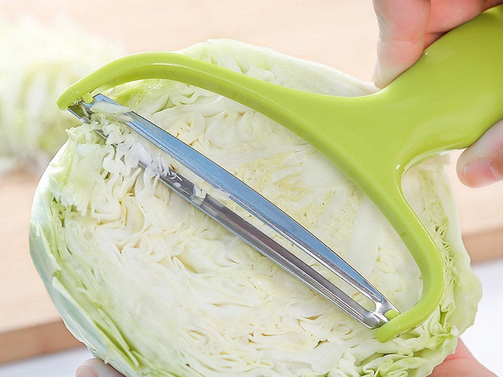Ang pamutol ng gulay ay may plastic na hawakan na hindi madulas sa mga kamay, maginhawang gamitin at hindi makapinsala sa mga kamay. Ang gilid ng kutsilyo ng device ay may lumulutang na disenyo at may double-sided sharpening, na nagbibigay-daan sa iyong epektibong linisin ang mga gulay sa anumang hugis at sukat.