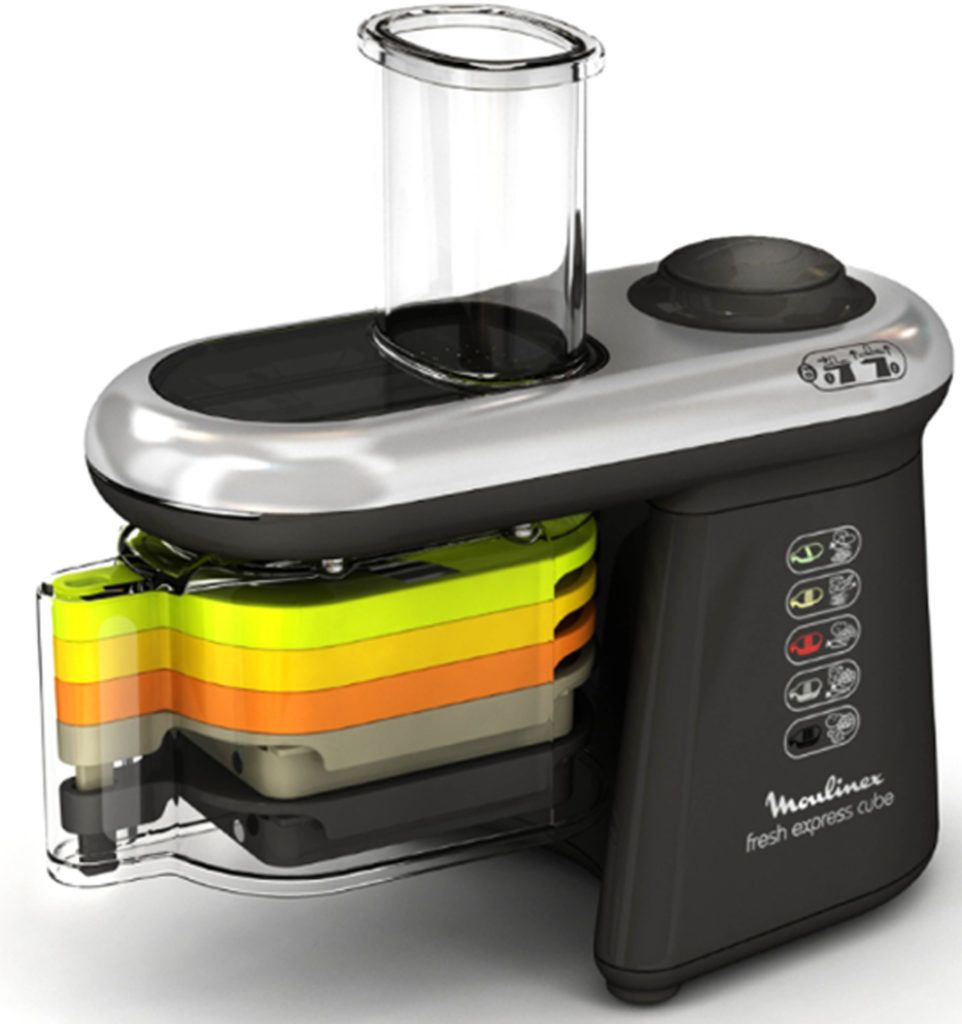 | 2 | "Multi-Cutter Moulinex Fresh Express Cube DJ905" | Presyo mula sa 8900 rubles | Kapangyarihan - 280 W; Bilang ng mga bilis - 2; Mga nozzle - 5 piraso: kutsilyo para sa dicing, straw, shredders, magaspang at pinong kudkuran; Bansang pinagmulan - France; Materyal ng produkto - plastik na may mataas na lakas. | ang disenyo ng multi-cutter ay ginawa sa isang paraan na hindi kinakailangan na pumili ng isang espesyal na mangkok para sa pagputol sa ilalim nito, maaari mong palitan ang anumang kinakailangang lalagyan; ang mga kutsilyo ay nakakabit gamit ang isang espesyal na magnetic holder, na lubos na nagpapabilis sa proseso ng pag-assemble ng aparato o pagbabago ng mga nozzle; hindi tulad ng maraming katulad na mga aparato, ang multi-cutter na ito ay gumagawa ng isang mahusay na trabaho ng pagputol ng pinakuluang gulay; naka-istilong disenyo. |