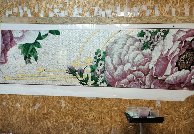 - Masining na pamamaraan - ginagamit ito nang eksklusibo kapag tinutupad ng mga propesyonal ang mga indibidwal na order ayon sa mga eksklusibong sketch. Ang gawaing ito ay banayad at maingat, tumatagal ng maraming oras. Posible na ihambing ito sa pagpipinta ng kamay, dahil ang pangwakas na layunin ay upang mangolekta ng isang buong sukat na larawan sa pamamagitan ng paglalagay ng maliliit na multi-kulay na mga fragment. Gayunpaman, kung ang imahe ay dapat na masyadong malaki, pagkatapos ay isang modular assembly ay maaari ding gamitin. Ang halaga ng naturang panel ay tataas depende sa kung paano ginamit ang maliliit na chips-plate sa panahon ng layout. Ang artistikong pamamaraan ay nagsasangkot ng paglalagay ng mga accent sa mga indibidwal na bahagi ng larawan at, kadalasan, ay hindi nagtatakda ng sarili nitong gawain ng pag-mask ng anumang mga di-kasakdalan ng natapos na ibabaw. Upang madagdagan ang aesthetic na halaga ng pangwakas na gawain, ang artistikong grawt ay espesyal na ginagamit - bawat fragment ay hadhad sa naaangkop na kulay.
