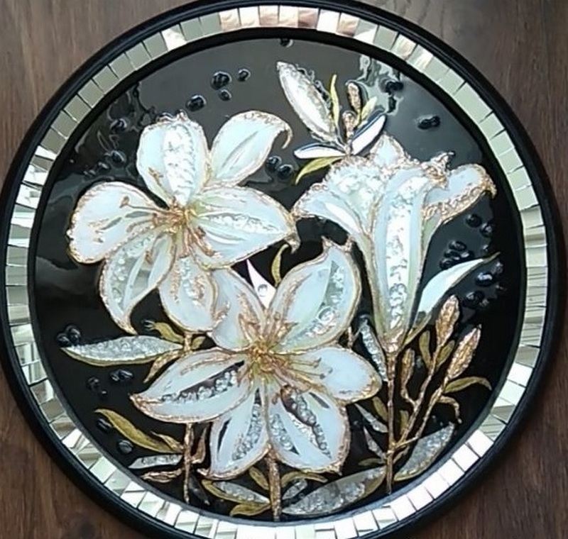 Ika-3 lugar: "Mga liryo sa itim" na may mga elemento ng salamin"