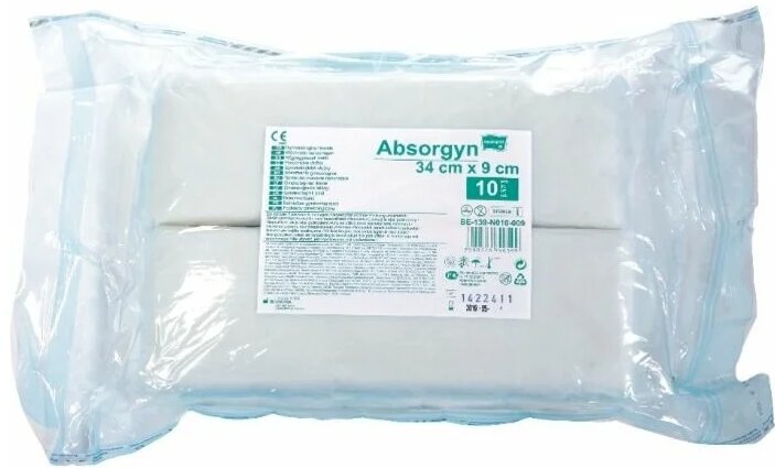Ang pakete ay naglalaman ng 10 piraso. Ang pangunahing tampok ay sterility. Mayroon itong klasikong hitsura (hugis-parihaba, walang baluktot).