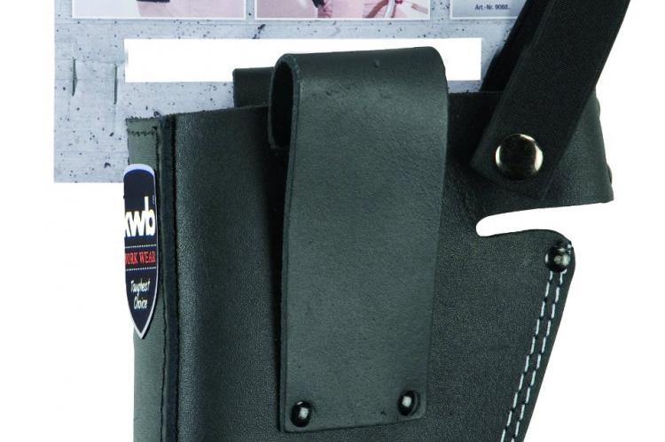 Ang lalagyan ng screwdriver mula sa Kwb ay gawa sa leather-based na materyal. Ito ay ipinakita lamang sa itim, ang kapal ng materyal ay 2 mm, ang mga indibidwal na elemento ng bag ay natahi kasama ng 2 tahi na may magkakaibang mga thread na pilak. Upang matiyak ang mas mahusay na pangkabit, nilagyan ng tagagawa ang modelo ng 2 buttonhole na matatagpuan sa itaas at ibaba ng holster. Ang modelo ay tugma sa anumang cordless screwdriver at may sukat na 18cm ang haba, 14cm ang lapad at 60mm kapag bukas.