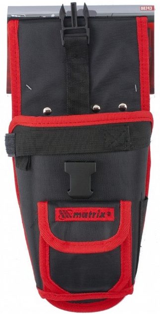 Ang holster mula sa kumpanya ng Matrix ay idinisenyo upang mag-imbak ng isang distornilyador at may magkahiwalay na mga compartment para sa mga bagay na maaaring palitan. Ginawa ng tagagawa ang modelong ito bilang karagdagan sa pangunahing tool belt. Ang mga hiwalay na compartment para sa mga tip sa kapalit ay ergonomically na idinisenyo, kaya hindi haharapin ng master ang problema ng pag-iimbak ng mga kapalit na kagamitan. Ang isang espesyal na buttonhole ay magbibigay-daan sa iyo upang ayusin ang screwdriver nang mas matatag sa holster. Ang materyal sa pagmamanupaktura ay batay sa high-density synthetics, kaya ang master ay maaaring umasa sa isang mahabang buhay ng serbisyo.