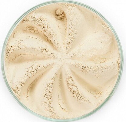 Russian brand - Roek Minerals. Ang texture ay isang maluwag na pulbos na nagiging translucent pagkatapos ng 10-15 minuto. Komposisyon: 100% Silk Powder, Iron Oxides (iron oxides).