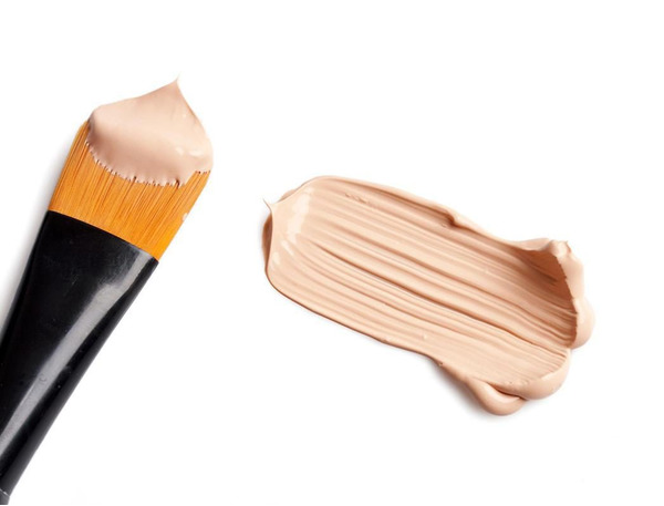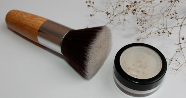 Paglalapat gamit ang isang brush na may siksik na bristle (powder brush) sa nalinis, nabasa ng cream, likidong balat.