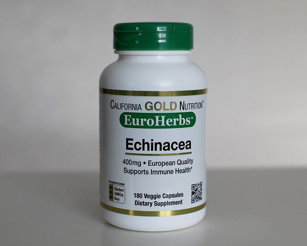 Bansa ng paggawa ng California Gold Nutrition, ang EuroHerbs ay USA. Ang produkto ay libre mula sa mga additives tulad ng gluten, soy at GMOs, at naglalaman ng pulbos mula sa aerial na bahagi ng Echinacea purpurea. Ang berdeng shell ng mga kapsula ay ginawa gamit ang pagdaragdag ng natural na dye chlorophyll, na natural na ginawa sa mga halaman. Ang California Gold Nutrition ay makukuha sa mga pakete ng 60 at 180 na kapsula. Dapat silang kainin nang paisa-isa, bago o pagkatapos kumain.