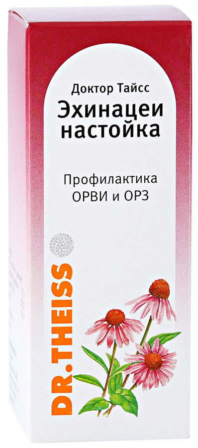 Ang kumpanyang Aleman na si Dr. Ang Theiss Naturwaren ay gumagawa ng Dr. Theiss spirit tincture, na napakapopular sa mga mamimili. Ilapat ang lunas bilang isang prophylaxis, 20-30 patak, 3 beses sa isang araw, at sa mga unang palatandaan ng sipon, 50 patak sa isang pagkakataon, pagkatapos bawat oras, 10-20 patak. Angkop para sa paggamit ng mga taong higit sa 12 taong gulang. Ang tincture ay naglalaman ng ethanol, echinacea at tubig.