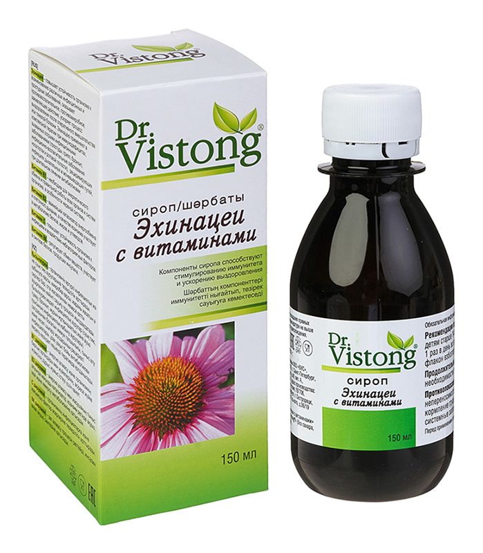 Ang Dr. Wiston syrup ay ginawa ng kumpanya ng Russia na VIS. Ang mga aktibong sangkap ng gamot ay echinacea, tubig, fructose, bitamina C, B2, B6, B1, pati na rin ang sodium benzoate. Ang gamot ay dapat inumin isang beses sa isang araw na may pagkain, ngunit hindi hihigit sa 30 ML bawat araw. Iling ang likido bago gamitin. Ang kurso ng pagpasok ay 2-3 linggo, ngunit kung kinakailangan, maaari itong ulitin. Ang tool ay may expectorant, mucolytic at anti-inflammatory properties. Dahil ang produkto ay naglalaman ng asukal, ang mga diabetic at mga taong nasa hypocaloric diet ay dapat mag-ingat sa pag-inom nito.