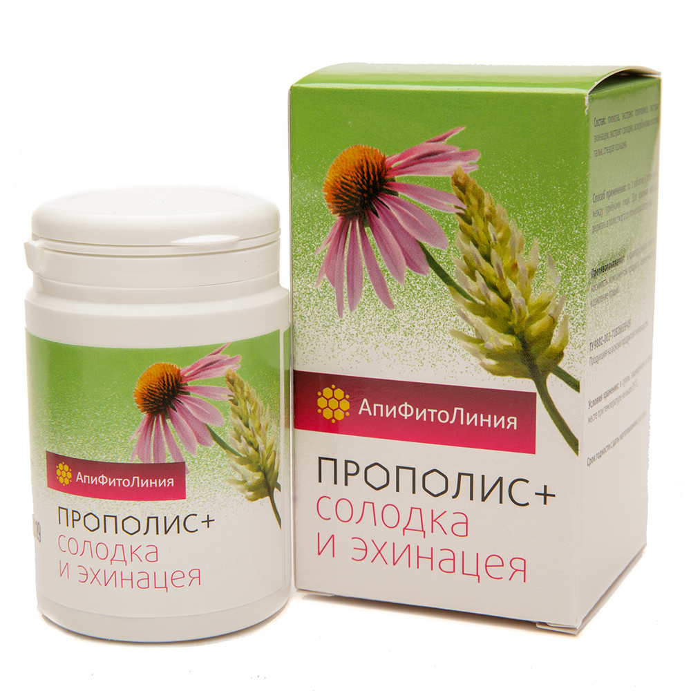 Apiphytocomplex, na kinabibilangan ng hindi lamang echinacea, kundi pati na rin ang licorice, bitamina C, propolis. Ginawa sa anyo ng mga tablet na 60 mga PC. nakabalot. Ang lunas ng natural na pinagmulan ay may immunostimulating, anti-inflammatory at antiviral effect. Ginagamit ito sa paggamot ng mga sakit na viral at ang kanilang pag-iwas. Uminom ng 1 tablet 3 beses sa isang araw bago o pagkatapos kumain.