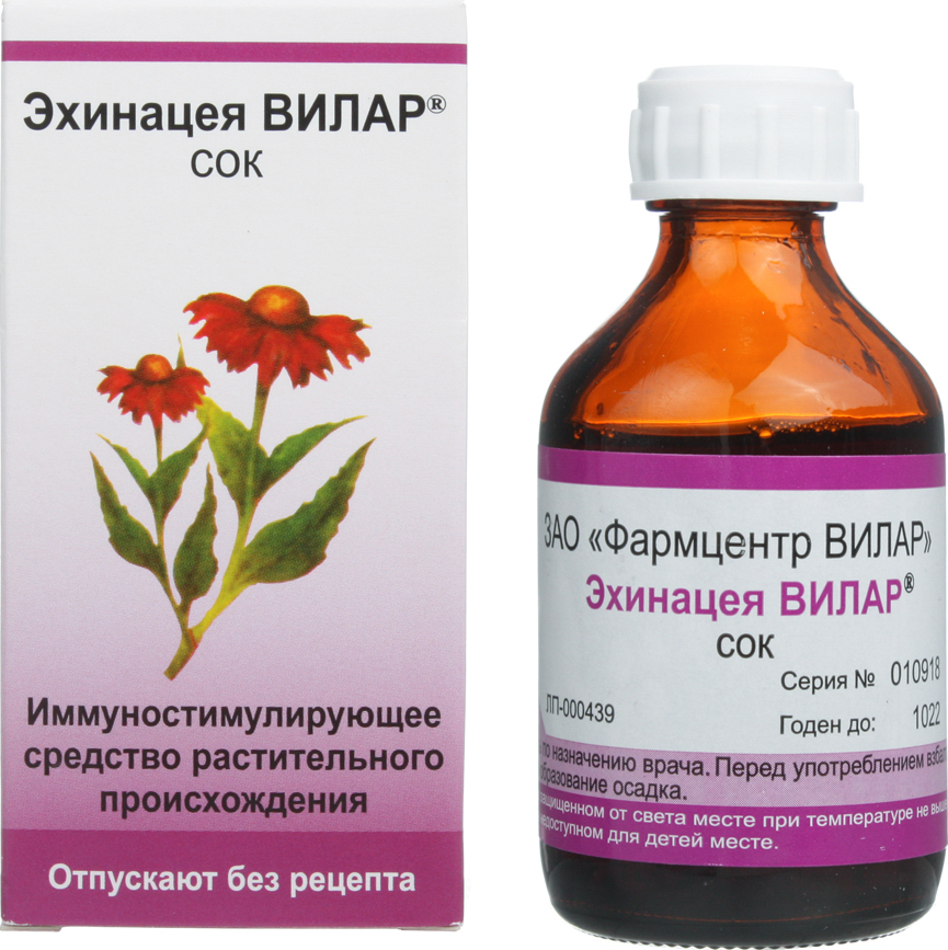 Ang Echinacea-VILAR ay isa pang produkto ng isang tagagawa ng Russia, na ginawa sa anyo ng isang tincture ng alkohol. Ang ahente ay isang pulang-kayumangging likido na may tiyak na amoy. Sa paglipas ng panahon, maaaring mangyari ang sedimentation. Ang immunostimulating na gamot ay ginawa sa 50 ML na bote. Dahil ang komposisyon ay kinabibilangan lamang ng juice at alkohol, ang pang-araw-araw na rate ay hindi dapat lumampas sa 3 ml.