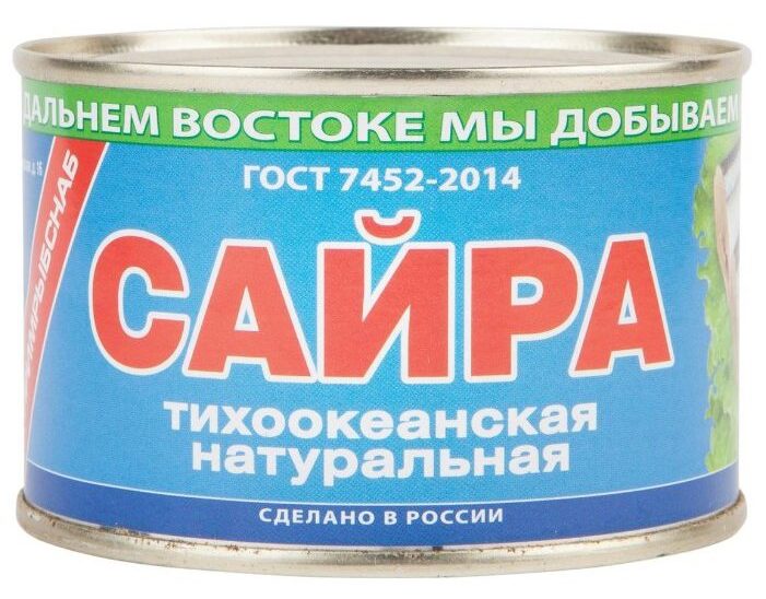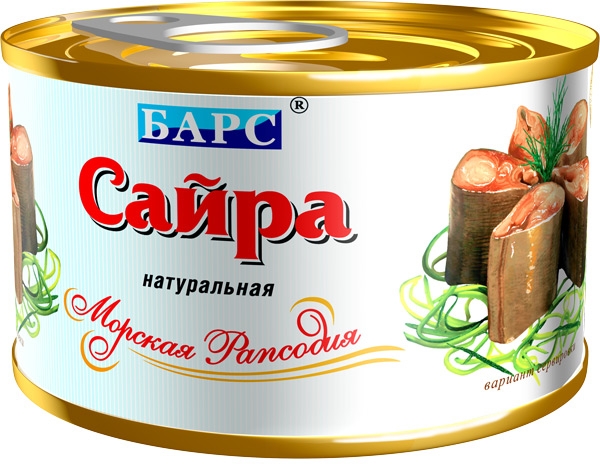 Ang Saury ay pinutol sa mga piraso at naka-kahong sa sarili nitong juice kasama ang pagdaragdag ng langis ng gulay, asin, pampalasa (paminta, bay leaf). Ginawa sa isang lata, tumitimbang ng 250 gr. Ang kumpanya ay matatagpuan sa rehiyon ng Kaliningrad, ang mga hilaw na materyales ay nagmula sa ibang mga rehiyon sa frozen na anyo. Presyo: 107 rubles.