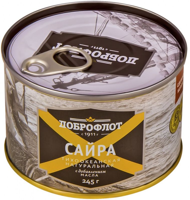 Itinatag ng Dobroflot ang sarili sa merkado bilang maaasahan at gumagawa ng mga de-kalidad na produkto. Saury ng natural na pagproseso, kasama ang pagdaragdag ng langis. Ang takip ng garapon ay madaling mabuksan gamit ang magagamit na susi (pambukas). Ang mga produkto ay may mahabang buhay ng istante: 3 taon. Presyo: 141 rubles.