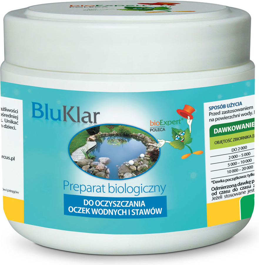 Magagamit sa anyo ng pulbos. Ang kit ay may kasamang isang sukat na kutsara, na nagbibigay-daan sa iyo upang wastong kalkulahin ang dosis. Bago ipasok sa tubig, ang produkto ay dapat na lasaw sa maligamgam na tubig. Ginagamit ang BluKlar upang linisin ang parehong natural at artipisyal na mga reservoir. Binubuo ito ng mga bacteria na hindi makakaapekto sa flora, fauna at mga tao.