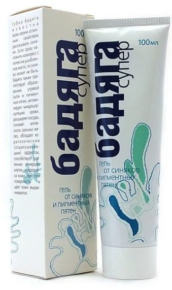 Ang gamot para sa mga pasa at pigmentation ay isa sa pinakasikat sa Russia. Ang Badyaga mula sa tatak ng Skimed ay magagamit sa dami ng 50 g, sa anyo ng isang gel.