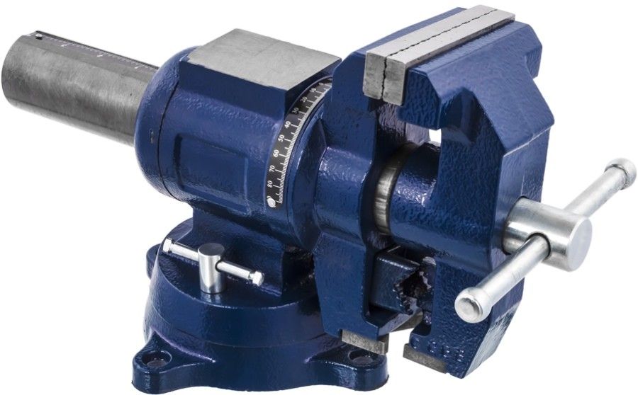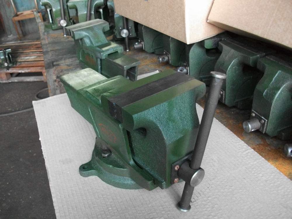 Ito ay isang tunay na pinuno sa isang malaking seleksyon ng locksmith vise. Ang matatag na disenyo, hindi kapani-paniwalang madaling gamitin, ay magbibigay-daan sa iyo na gamitin ang vise nang mahabang panahon nang walang pahinga. Ang base ay gawa sa mataas na kalidad na cast iron, na hindi natatakot sa mga naglo-load, kabilang ang malakas na suntok. Salamat sa natatanging hugis nito at wastong pag-install ng lahat ng bahagi, ang vise na ito ay madaling ayusin ang daluyan at malalaking bahagi, kabilang ang mga tubo. Upang mapupuksa ang kaagnasan sa mga elemento ng bakal, pinahiran ng tagagawa ang mga ito ng isang matibay at lumalaban na pintura ng pulbos na hindi mapupuksa. Mayroong swivel na disenyo na nagpapadali sa trabaho sa mga workpiece sa anumang eroplano na kumportable hangga't maaari para sa manggagawa. Ang pag-aayos ay nangyayari sa dalawang stoppers, dahil kung saan ang tagapagpahiwatig na ito ay maaaring iakma sa kalooban. Para sa isang simpleng mamimili, ang aparatong ito ay nagkakahalaga ng 8900 rubles.