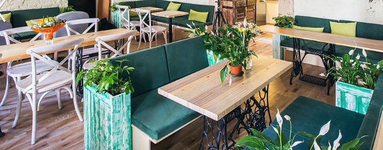 Pag-aayos ng mga talahanayan sa cafe na "Green Heart"
