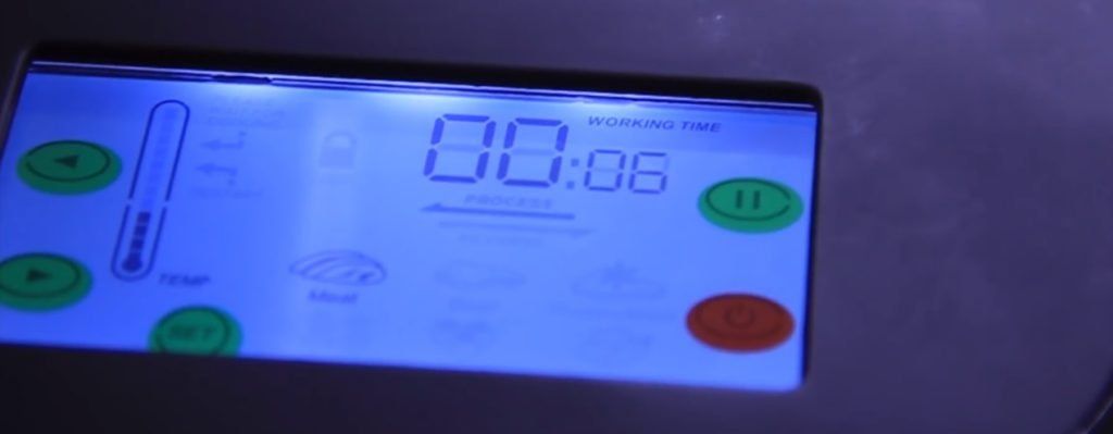 Ang kontrol ay isinasagawa gamit ang isang touch LCD screen, kung saan maaari mong subaybayan ang temperatura ng motor (upang maiwasan ang overheating), ang oras ng tuluy-tuloy na operasyon ng device ay maaaring i-pause. Gayundin, kapag pumipili ng mga produkto para sa pagproseso sa screen, ang gilingan ng karne mismo ay lumiliko sa naaangkop na bilis.