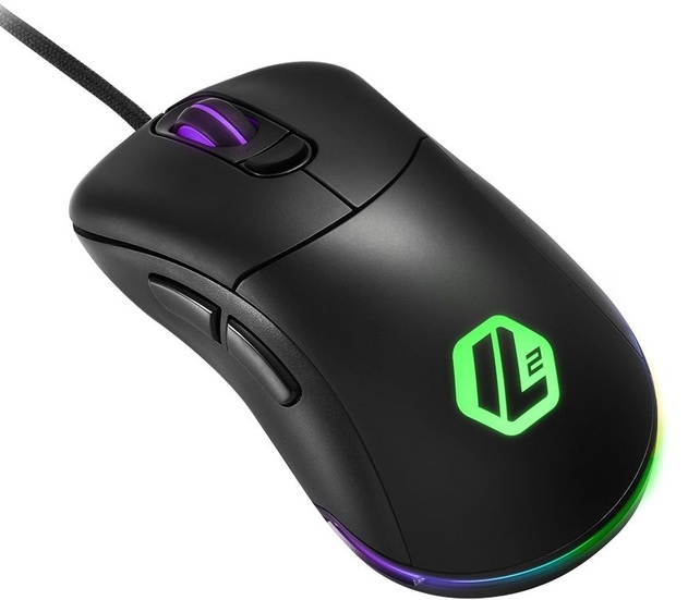Ang magaan na 78g mouse na ito ay naaayon sa pangalan nito. Kasama ng isang ergonomic na right-handed form factor, ang bigat ng modelo ay nagbibigay ng mahusay na paghawak. Bilang isang resulta, ang mga aksyon sa laro o trabaho ay madaling natupad, at ang kakulangan sa ginhawa sa lugar ng pulso ay hindi naramdaman. Tinitiyak ng 2 malalaking thumb key ang kumportableng operasyon at madaling pag-access, anuman ang posisyon ng kamay. Ang pinagsamang PixArt 3325 sensor, na may resolusyon na hanggang 5000 DPI, sa 7 nako-customize na hakbang, ay ginagarantiyahan ang mataas na katumpakan para sa anumang gawain. Sa pamamagitan ng software ng paglalaro, ang mga sistematikong utos ay maaaring maginhawang italaga sa alinman sa 6 na programmable key.
