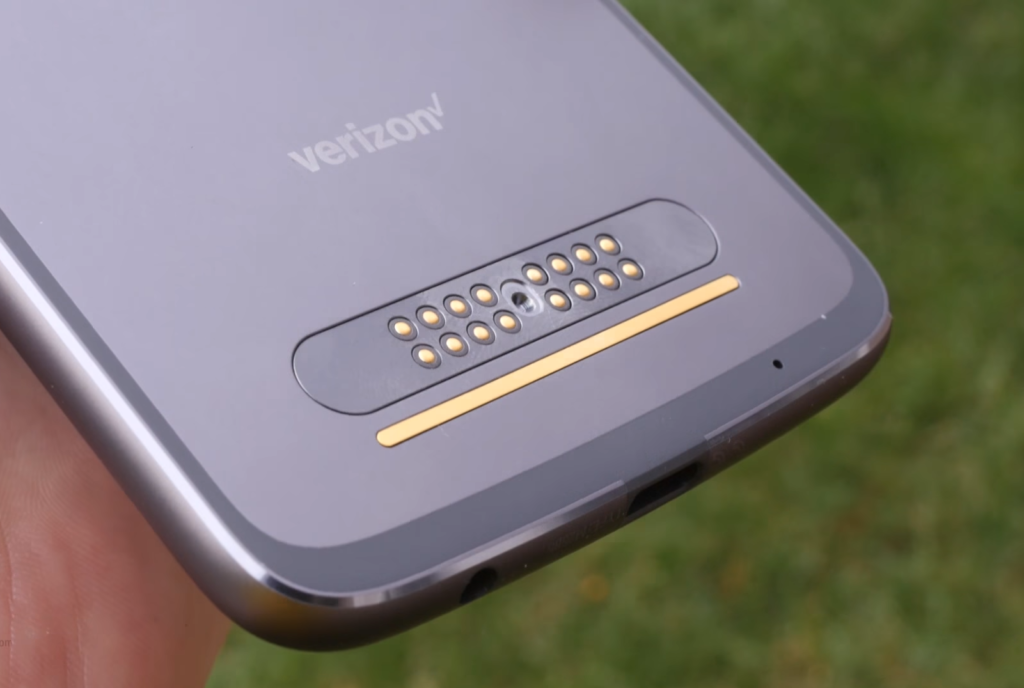 Matatagpuan ang bloke ng contact ng Moto Mods Connector sa likod ng telepono, dito ikakabit ang mga overlay na binili ng user.