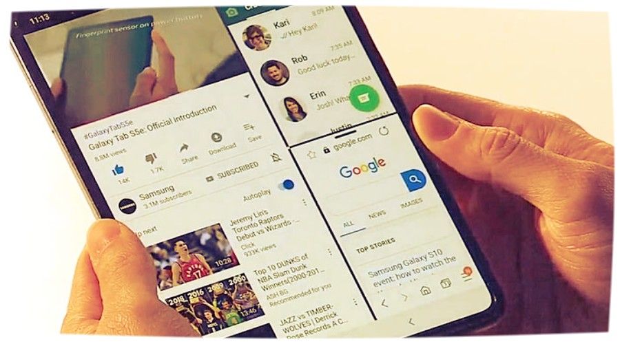 Kung habang nagtatrabaho sa Galaxy Fold sa mode ng telepono, ang kalinawan ng kontrol ay nasa unang posisyon, kung gayon kapag binubuksan ang "libro" sa tablet mode, ang mga gumagamit ay nakakakuha ng napakahusay na multitasking.