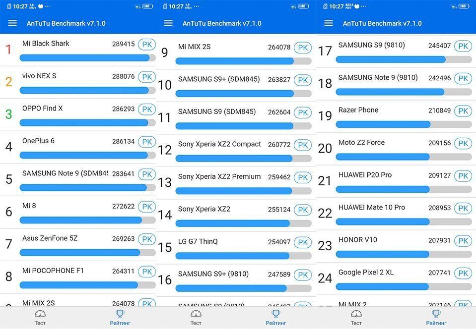 Ang pagsubok sa AnTuTu Benchmark ay nagbigay ng mga sumusunod na resulta: