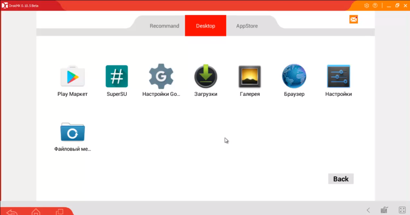 Isang medyo mataas na kalidad na emulator na pangunahing ginagamit ng mga manlalaro. Naglalaman ng lahat ng kinakailangang pag-andar para sa mga mahilig sa laruan. Posibleng mag-download ng mga application mula sa opisyal at alternatibong tindahan, pati na rin ang mga file na may extension na .apk. Gumagana sa parehong "magaan" at mabibigat na laro. Kasama sa installation kit ang karaniwang nilalaman tulad ng Play Market, Facebook at iba pang mga application.