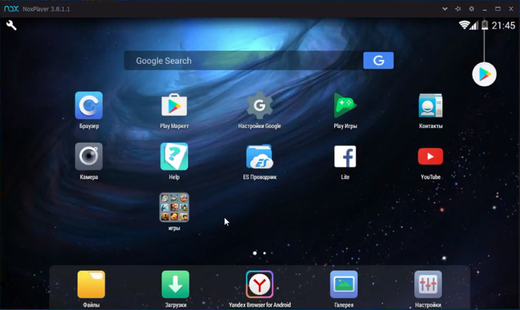 Minimalistic na disenyo, kadalian ng paggamit, magkakaibang pag-andar - lahat ng ito ay ginagawang isa ang Nox sa pinakasikat na mga emulator sa mga user. Ang programa ay may pinakamataas na pagganap kumpara sa mga analogue. Posibleng kumonekta sa tinatawag na "multi-mode" - ang paggamit ng ilang device nang sabay-sabay. Mabilis na pag-export at pag-import ng mga application sa pamamagitan ng isang maginhawang file manager. Ang programa ay perpekto para sa mga manlalaro, dahil sinusuportahan nito ang trabaho sa mga joystick, gamepad, ang pagtatalaga ng "mga hot key". Kasama sa package ng pag-install ang ilang sikat na application at laro. Kabilang sa mga pakinabang, kinakailangang i-highlight ang katotohanan ng kumpletong kawalan ng bayad sa subscription.
