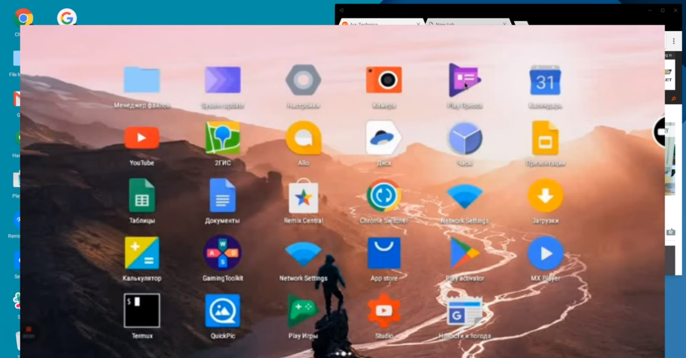 Isa pang utility mula sa mga developer ng Tsino. Totoo, mas malawak ang mga pagkakataon para sa mga manlalaro dito - sinusuportahan pa ng emulator ang mga 3D na laro na may mahusay na graphics. Ang interface ng Remix OS ay kahawig ng isang operating system tulad ng Mac o Windows. Sinusuportahan ang kakayahang magtrabaho sa Google Market o mag-upload ng mga apk file nang mag-isa. Posible rin na maglaro ng media, magpatakbo ng mga application sa maraming bintana, at mag-save ng mga laro sa hard drive ng PC.