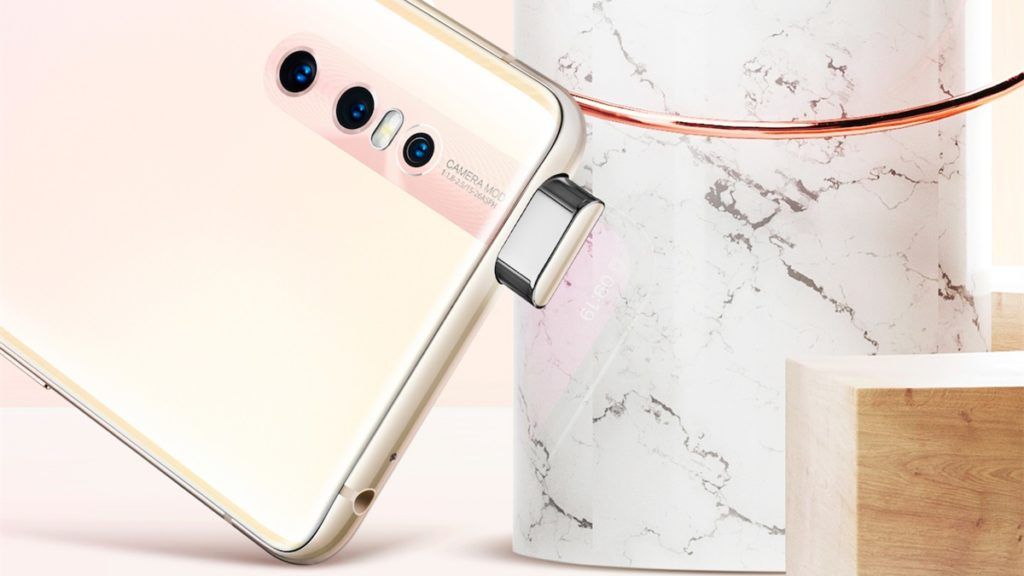 Ang itaas na bahagi ng kaso ay may dalang tagapagsalita para sa mga pag-uusap. Ang malapit ay isang indicator ng notification at isang front camera.Tulad ng nabanggit kanina, ang front camera sa device ay hindi masyadong karaniwan at may posibilidad na bawiin. Ang pangalawang natatanging tampok ng camera ay ang pagtaas ng laki nito - ito ay mas malawak kaysa sa maraming katulad na mga module. Sa kaliwang bahagi ng frame ay isang karaniwang audio connector, 3.5 jack. Dahil sa malawakang katanyagan ng mga bluetooth headphone, hindi na kailangang i-install ang connector na ito.