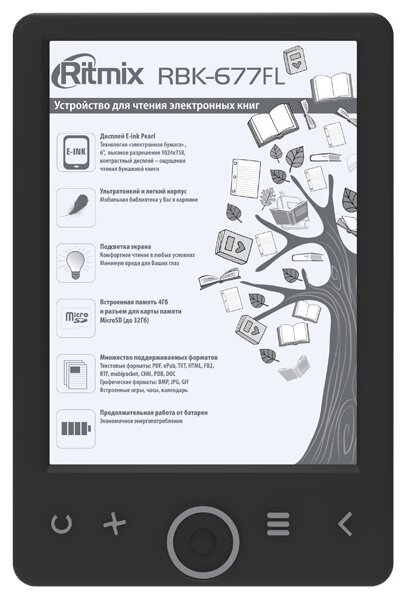 Plastik bir kasa içerisinde tasarlanan 6 inç ekrana sahip kitap, koruyucu bir kapakla geliyor. Mevcut "kitap" biçimleri arasında txt, pdf, epub, djvu, html, rtf, htm, chm, zip, mobi, doc, fb2, pdb bulunur, cihaz ayrıca jpg, bmp, png, gif gibi grafik formatlarını da destekler. 16 gri tonu, yüksek kaliteli bir görüntü elde etmenizi sağlar. Yönetim mekaniktir.