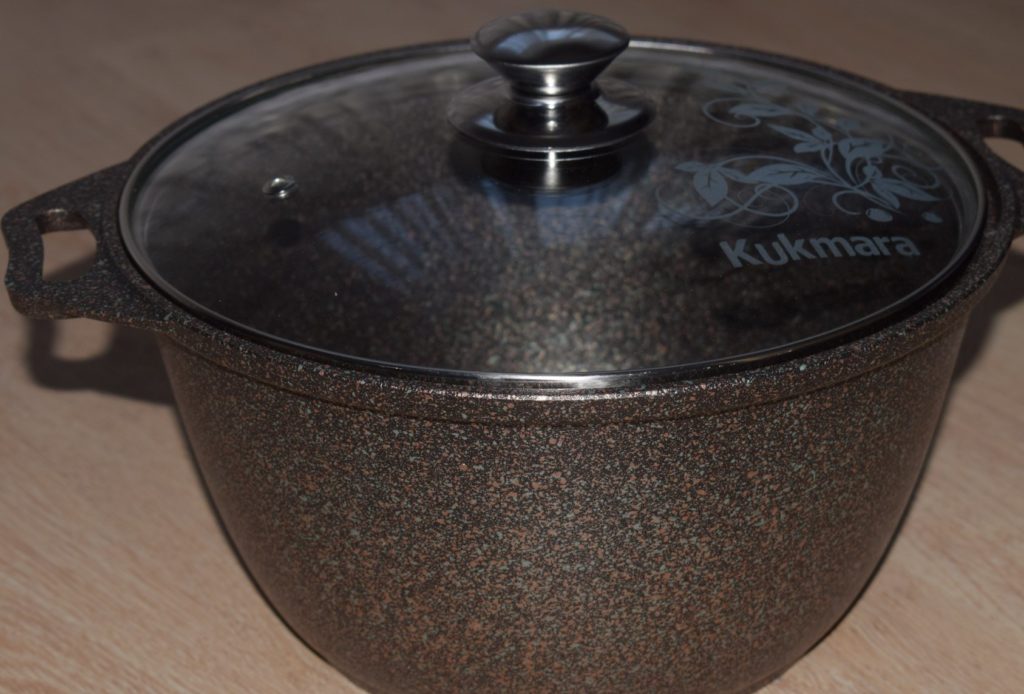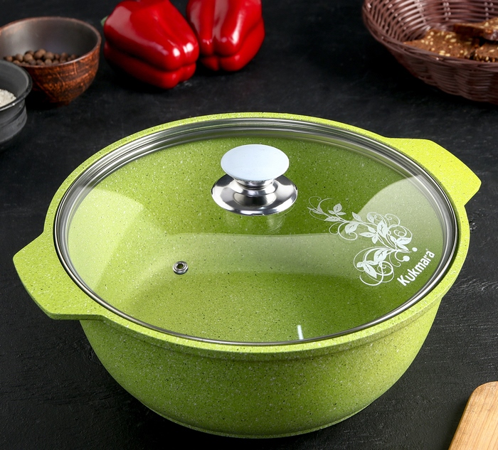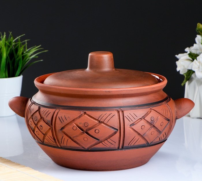 Şık bir mangal hemen hemen her hoste hitap edecek. Konteynerin kapasitesi 3 litredir. Dışarıdan ürün şık bir desenle dekore edilmiştir. Kullanışlı kulplar, kabı doğru yönde hareket ettirmenizi sağlar. Kapak sıkıca oturur, böylece bulaşıklar sululığını kaybetmez ve kendi suyunda pişer.