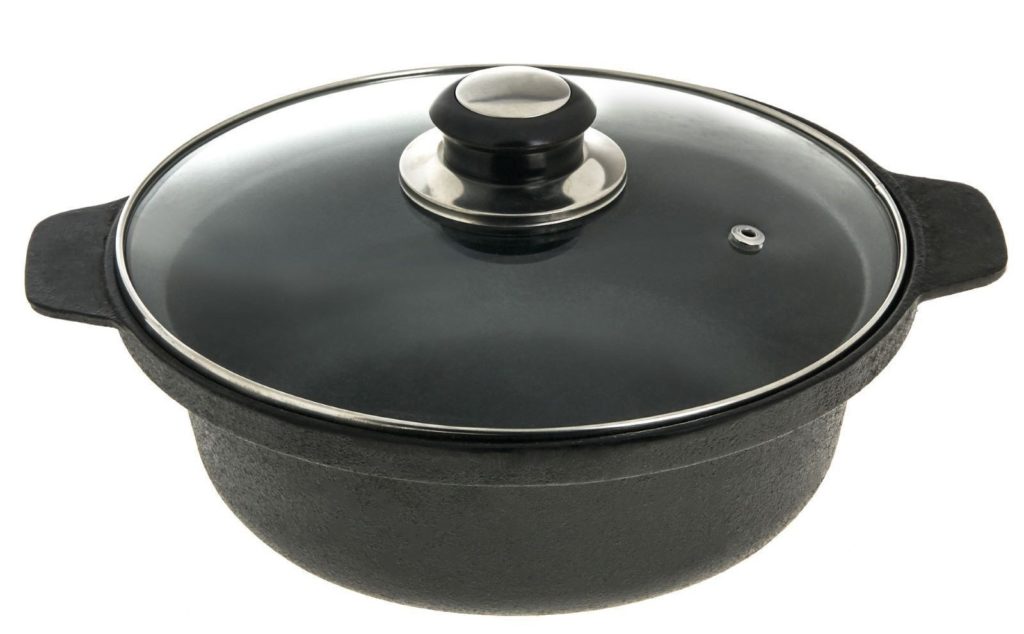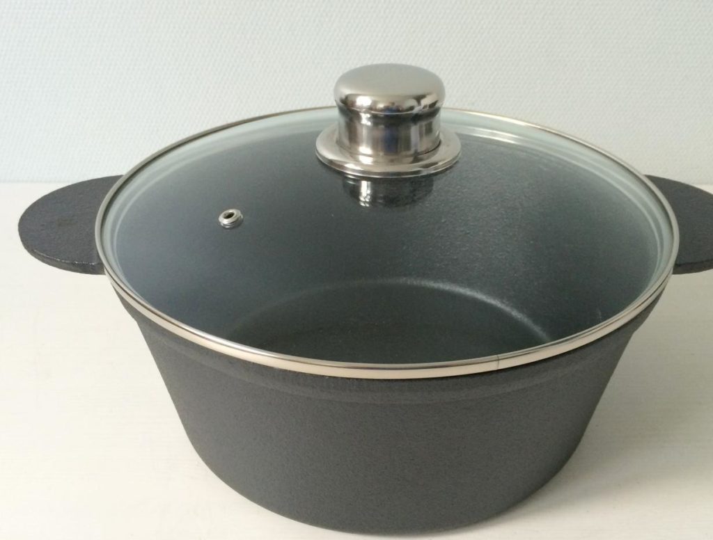 Dökme demir modelleri çok popüler. Isındıktan sonra ısıyı uzun süre muhafaza eder ve kendi suyunda ürünlerin hazırlanmasına katkıda bulunurlar. Modelin avantajı, sık kullanımda bile malzemenin zarar görmemesidir. Ürünü açık ateşte kullanabilirsiniz, ancak fırın için kapağın çıkarılması gerekir. Model ağır olduğu için sadece elde yıkanmalıdır.