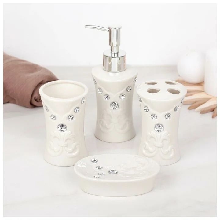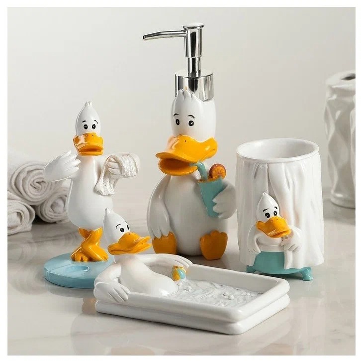 Banyo için bu seri, aynı anda 5 öğeyi birleştirir. Bu bileşim, standart hijyen maddelerine ek olarak da dahildir.
