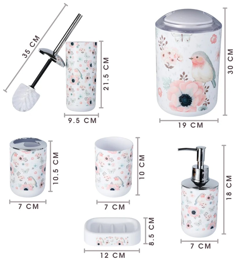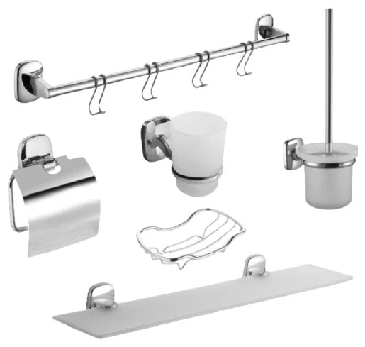 6 parçalı set, yüksek mukavemetli ABS plastikten oluşmakta ve krom kaplama detaylarla tamamlanmaktadır. Tasarımın sadeliği ve hoş renk şemaları, koleksiyonun sadece modern minimalizme uyan iç mekanlara uyumlu bir şekilde uymasını sağlayacaktır. Ama aynı zamanda nazik Provence ve katı klasikler veya İskandinav tarzında.