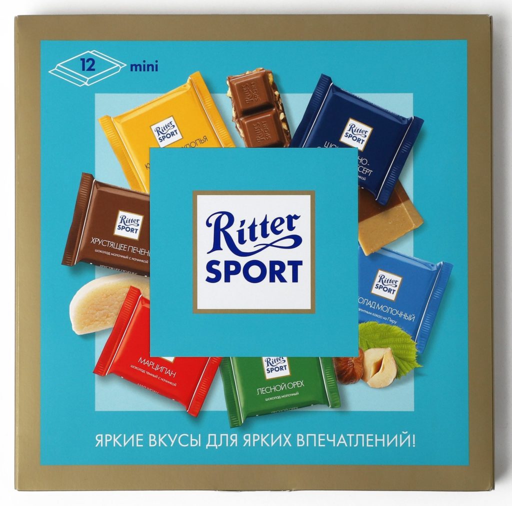 Popüler Ritter Sport markasından 12'li çikolata setinde herkes kendi zevkine göre bir şeyler bulacak. Prezentabl, özlü, cinsiyetten bağımsız ambalaj, onu her durum için uygun hale getirir.