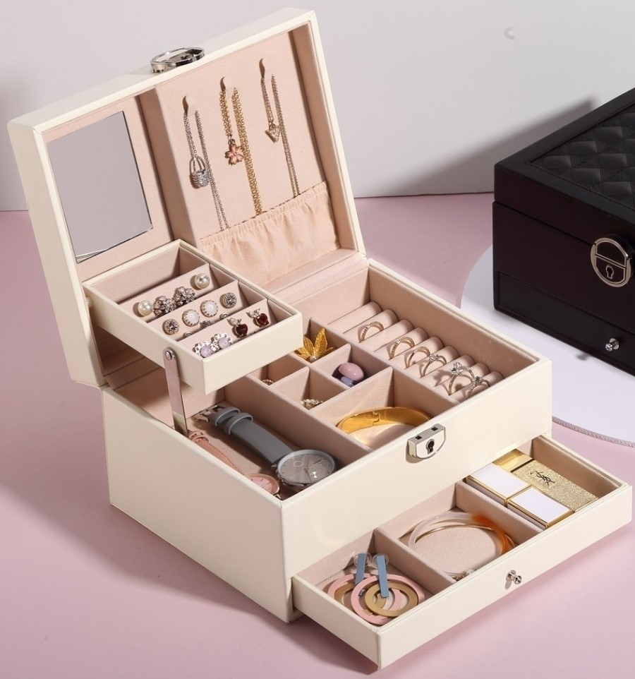 Mücevherlerin depolanması çeşitli şekillerde düzenlenebilir, örneğin bir dizi tabut ve ayrı yüzük, küpeler, kolyeler satın alın. Veya tam tersi, her türlü mücevheri tek bir yerde saklamayı sağlayan büyük bir organizatör satın alın.