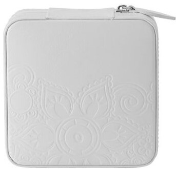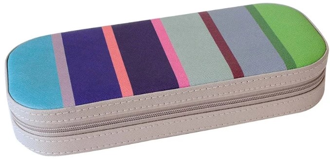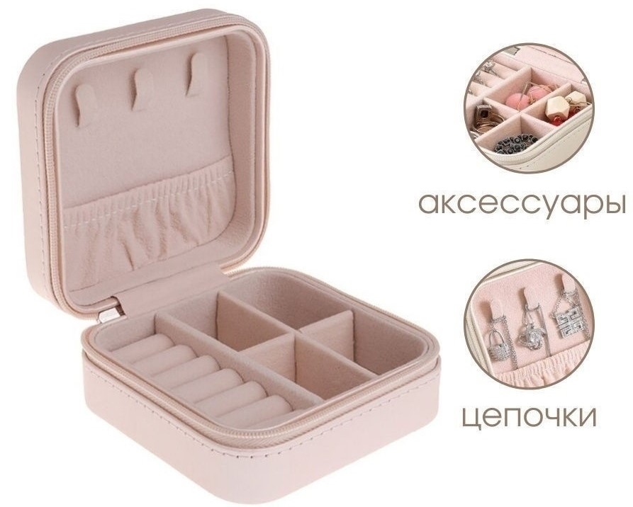 Model seyahat için kullanışlıdır, içine sadece takılar değil, saatler, kol düğmeleri ve diğer küçük şeyleri de sığdırabilirsiniz. İçinde küçük bir ayna var. Fermuar, uzun süreli saklama sırasında içeriği güvenli bir şekilde içeride tutacaktır. Boyutlar: 23x3.8x10 cm Ağırlık: 0,3 kg. Kasa malzemesi: suni deri. Ortalama maliyet: 5160 ruble.