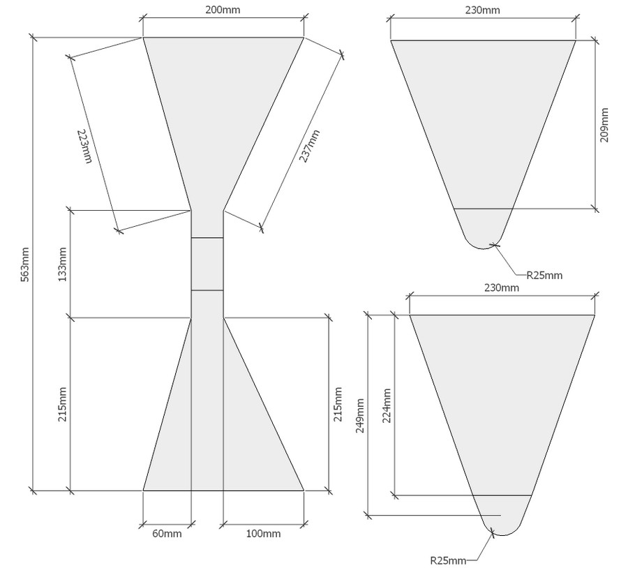 Kendi aralarında, yalnızca tutamağın açısında ve memelerin konumunda farklılık gösterirler. Tavan hunisinin nozulları dikey eksene 45 derecelik bir açıdadır ve doğrudan yukarıya bakar, duvar hunisininkiler ise huni ile aynı eksenine 90 derecelik bir açıyla yerleştirilmiştir.