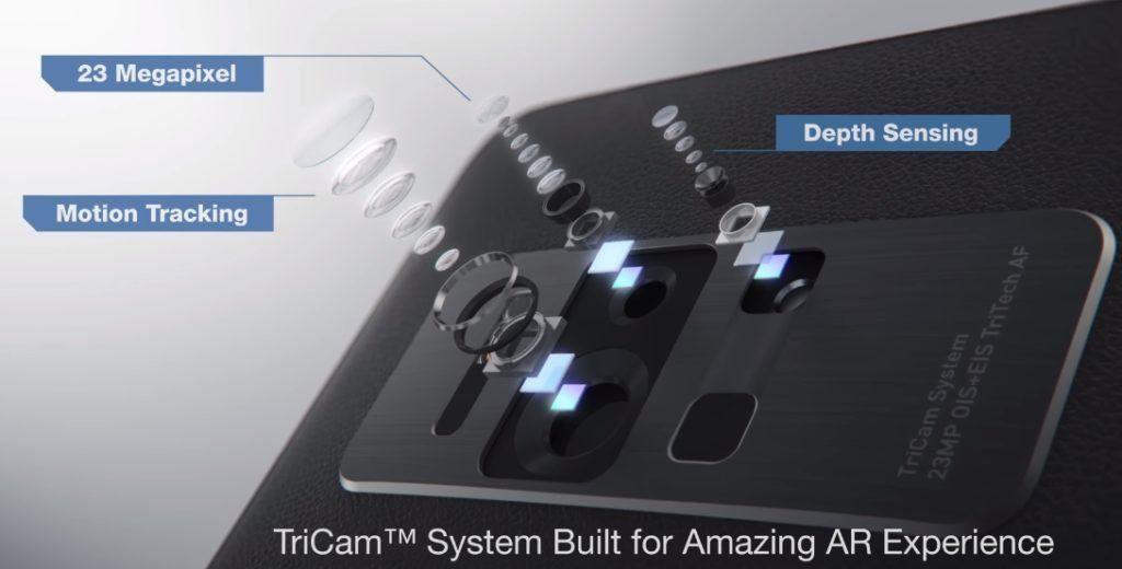 اہم کے علاوہ، فشی آئی لینس والا کیمرہ بھی Tricam سسٹم میں بنایا گیا ہے، جو خلا میں فون کی نقل و حرکت کو ٹریک کرنے کے لیے ضروری ہے۔