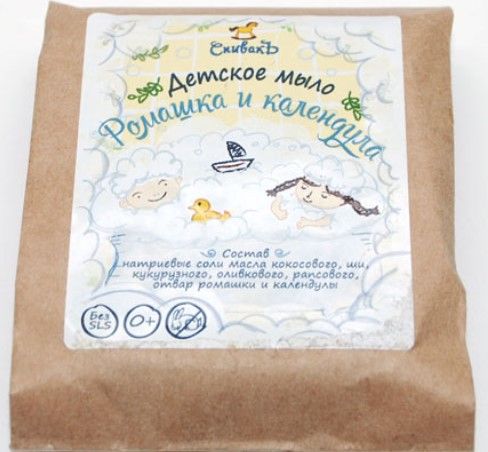 بچوں کے صابن میں، پانی کی بجائے، کیمومائل اور کیلنڈولا کا کاڑھی استعمال کیا جاتا ہے۔ ساخت میں ایسٹر شامل نہیں ہیں، لہذا یہ hypoallergenic ہے اور یہاں تک کہ چھوٹے کے لئے موزوں ہے.