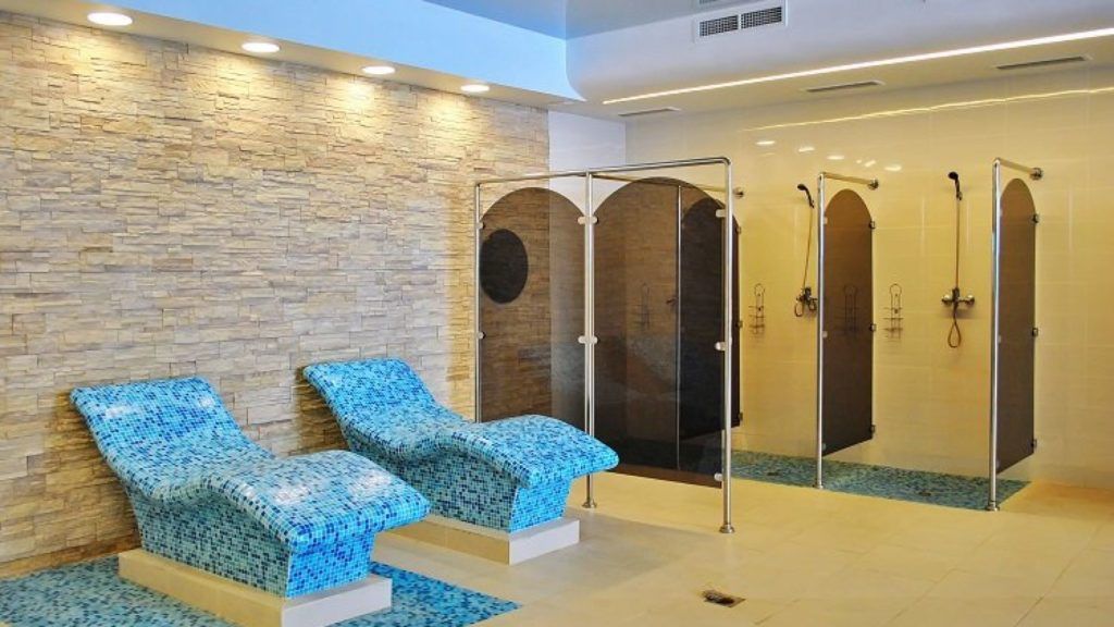 خشک بھاپ کے پرستار فینیش سونا کا دورہ کر سکتے ہیں، اور جو لوگ گیلے بھاپ کی زیادہ تعریف کرتے ہیں وہ روسی لکڑی سے چلنے والے بھاپ کے کمرے کو پسند کریں گے۔ نہانے کے بعد، آپ ہائیڈروماسج کے ساتھ جاکوزی میں ڈوب سکتے ہیں۔ چھٹی، پارٹی یا ضیافت منعقد کرنے کے لیے، ایک بینکوئٹ ہال ہے جس میں ریستوراں کے مینو سے پکوان آرڈر کرنے کا امکان ہے۔ آپ اپنا کھانا اور مشروبات بھی لا سکتے ہیں۔
