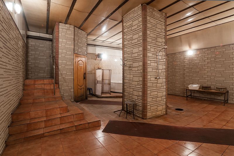 عوامی حمام کی عمارت میں پانی کے طریقہ کار سے آرام کرنے کے لیے محفوظ قدرتی مواد اور خوبصورت فرنیچر سے بنا ایک آرام دہ اور عملی داخلہ کے ساتھ ایک الگ کمرہ ہے۔ یہاں آپ چمنی کے پاس بیٹھ سکتے ہیں یا بلیئرڈ کھیل سکتے ہیں۔ آپ یہاں کھانے کے لیے کاٹ سکتے ہیں، حمام کی عمارت میں ایک کیفے ہے۔