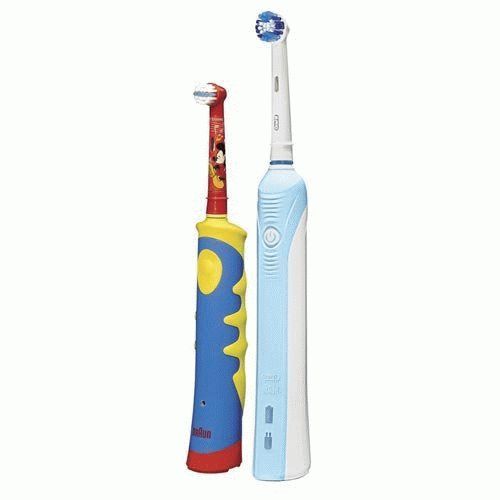 برانڈ کی فیملی کٹس میں سے ایک میں دو ٹوتھ برش شامل ہیں، ایک بچے اور ایک بالغ کے لیے۔